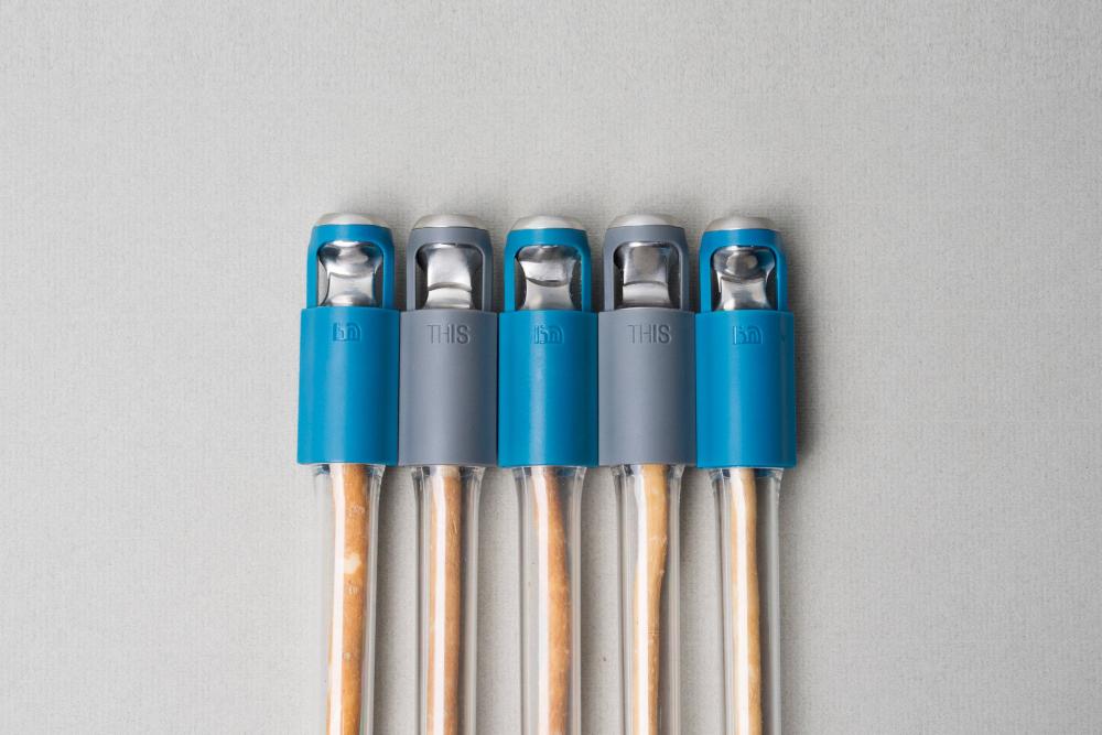 THIS Toothbrush markası için tasarlanan ve deney tüpüne benzeyen misvak koruma kabı, paslanmaz çelikten bir kesici içeriyor. Böylece çubuğun ucunu açmak ve ortalığa kirletmeden bu işlemi halletmek mümkün hale geliyor. Dipteki delikli koni, çubuğun ucundaki liflerin açılmasını sağlıyor. Bu da misvak liflerinin kalıp gibi birbirine yapışmış halde kalması yerine ayrılmalarını ve çubuğun diş fırçasına benzer kıllı/lifli bir hale gelmesini sağlıyor.