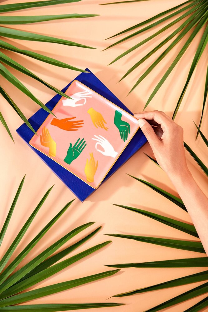 Octaevo tarafından piyasaya sürülen seramik tepsiler, farklı kültürlerden iyi şans getireceğine inanılan sembollerle süslenmiş.