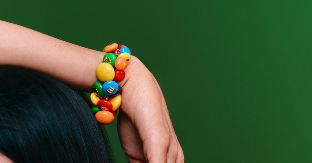 Koleksiyonun en dikkat çekici parçalarından biri ise hiç kuşkusuz ki yuvarlak formda M&M’s bonbonlarının büyük bir replikasını andıran sert kaplamalı çantalar. Ancak kapsül koleksiyonda yalnızca çantalar değil aynı zamanda bir şekerleme demetini andıran bileklikler, charmlı sallantılı küpeler ve M&M’s ambalajlarından esinlenen anahtarlık gibi parçalar da yer alıyor. Kate Spade New York’un Z kuşağı tüketiciye ulaşma stratejisinin bir parçası olan bu özel kapsül koleksiyon, aynı zamanda markanın renkli çizgisine biraz daha neşe katma amacını güdüyor. Gıda markaları ile moda tasarımcılarının birlikteliklerinden doğan bu tarz işler ilginizi çekiyorsa bu habere de göz atabilirsiniz.