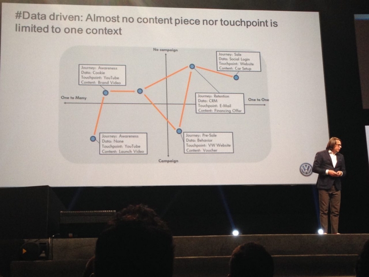Kullanılan iletişim teknikleri ise verinin anlamlandırılması sırasında şekilleniyor. Tekilden çoğula, tekilden bir kısma ve tekilden bireye olarak farklı gruplara ayrılabilen iletişim teknikleri beraberinde kampanya hazırlama ve hazırlamama ikilemini de doğuruyor. Her birinde farklı kitlelere farklı deneyimler yaşatmayı amaçlayan Volkswagen, e-posta bültenleri gibi çoğul iletişimden kişiselleştirilmiş internet sitesi deneyimine kadar farklılaşan kampanyalar kurguluyor.