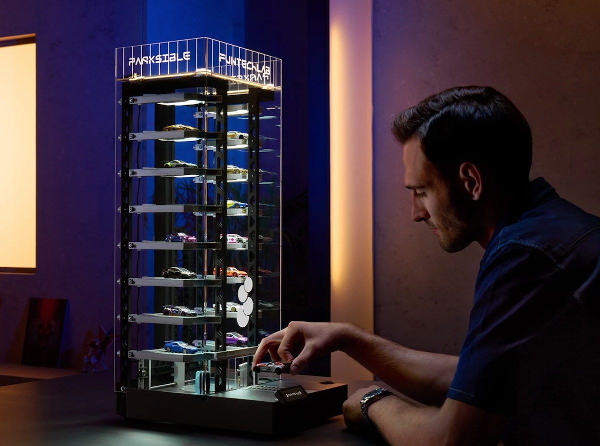 Fun-Tech-Lab, daha önce Windsible ve Runsible isimli masa üstü ürünleriyle 300 milyonun üzerinde etkileşim almıştı. Ekip, şimdi de iF Design Award 2026 ödüllü Parksible adından söz ettiriyor. Parksible, motorize raflar (park alanları) üzerinde 14 aracı barındırabiliyor, yükleme ve çıkarma işlemlerini otomatik olarak yapıyor, 7/24 sıcaklığı ve nemi takip ediyor ve bir mobil uygulama ile uzaktan kontrol ve koleksiyon yönetimi imkanı sağlıyor. Parksible PRO versiyon ise her model aracın gelişinde tarama yapan entegre bir kamera içeriyor ve uygulama içinde 360 derece dijital envanter oluşturuyor.