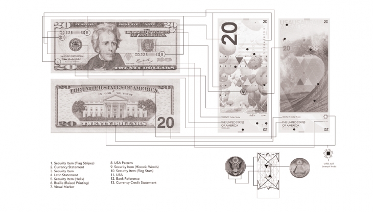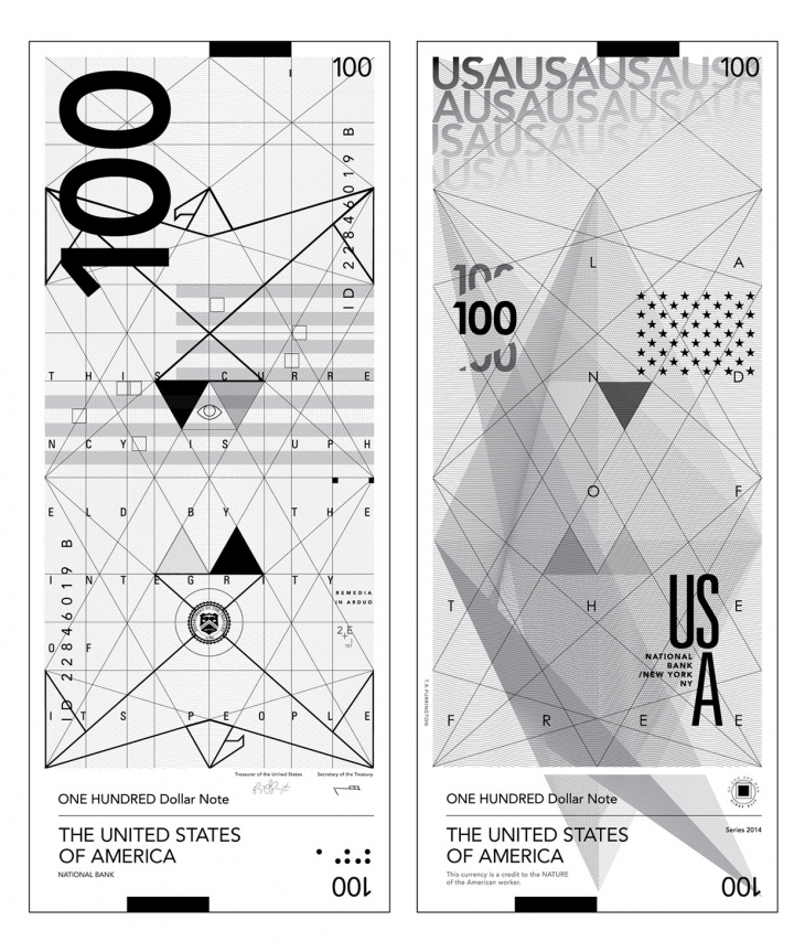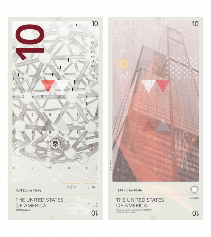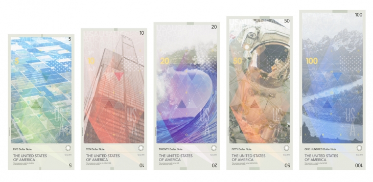 2014 yılında Norveç, tasarım konusunda radikal kararlar alırken Amerikalı sanatçı Travis Purrington, Master tezi olarak Amerikan Dolarının tasarımını modernize etmeyi seçiyor. Basel School of Design (Basel Tasarım Okulu) mezunu olan sanatçı bu sene başında yaptığı çalışmasında Amerikan liderleri yerine bilim, çevre, ekonomi gibi konulardaki değerlere yer veriyor. İsviçre Frangının her 20 yılda bir düzenlenen bir yarışma ile tasarım değişikliği yapmasından ilham alan sanatçı, Amerikan kültüründe yaşanan güncel değişimlerin yarattığı etkiyi banknot tasarımına yansıtıyor.
