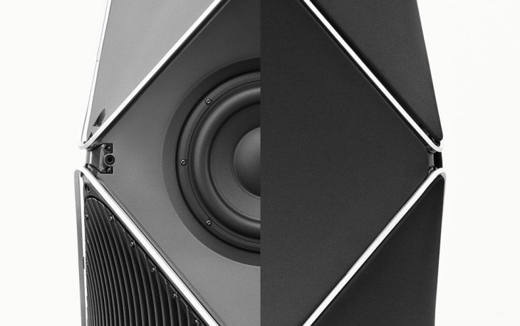 Hoparlör, akustik özelliklerinin yanında, modern ve heykelvari tasarımıyla mekana dekoratif olarak da hareket katacak bir estetiğe sahip.