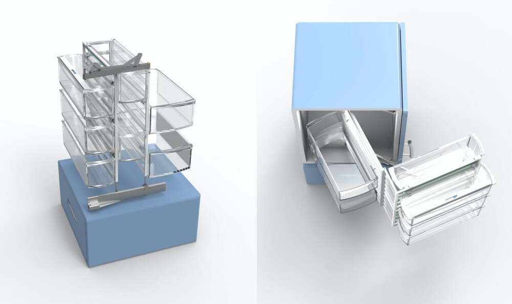 Buzdolaplarında en çok zorlandığımız durumlardan biri arkalardaki ürünlere ulaşmak oluyor. Ürüne ulaşmak için önde yer alan ürünler arkaya itiliyor veya başka bir rafa konuluyor. Saklama alanlarının etkili kullanılamaması sonucu bazı ürünler bozulabiliyor. PRESENTA ile kullanıcı tek bir hareketle buzdolabındaki tüm ürünlere ulaşılabiliyor. Bu basit ve raylı sistem tüm ürünlerin bir arada ve tek tek görülmesine imkan tanıyor.