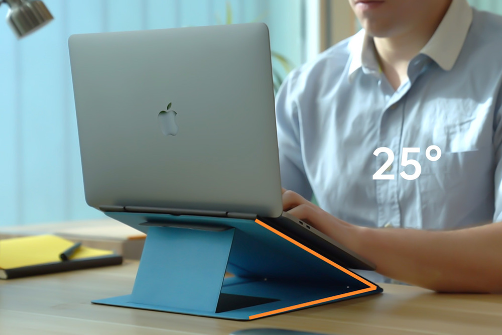 MOFT Z aslında yüksekliği ayarlanabilir bir laptop standı. Otururken tabletinizi ya da kitabınızı yaslayabileceğiniz, laptopunuzu masaya koyup ya da kucağınıza alıp çalışabileceğiniz sıradan bir stand gibi duruyor. Kullanım amacınıza göre 25, 45 ve 60 derecelik açılara ayarlayabiliyorsunuz. Hatta 60 derecelik açıda çizim yapmak için de harika bir araca dönüşüyor. Ayağa kalmak istediğinizde ise Z şeklini alıyor ve laptop’ı üzerine koyabileceğiniz daha yüksek bir yüzey sunuyor.