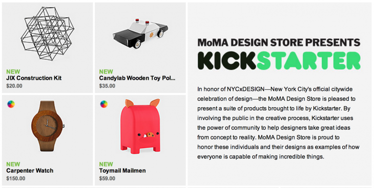 24 Kickstarter çıkışlı ürün Temmuz ortasına kadar MoMA Design Store’da satışta olacak. Mağazayı ziyaret etmek için: http://www.momastore.org/museum/moma/CategoryDispl…