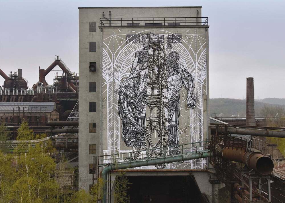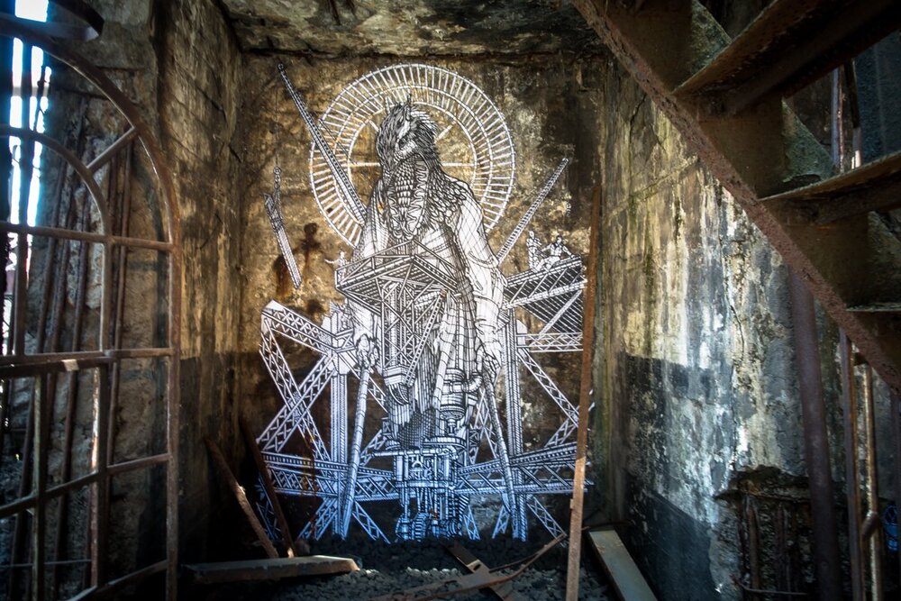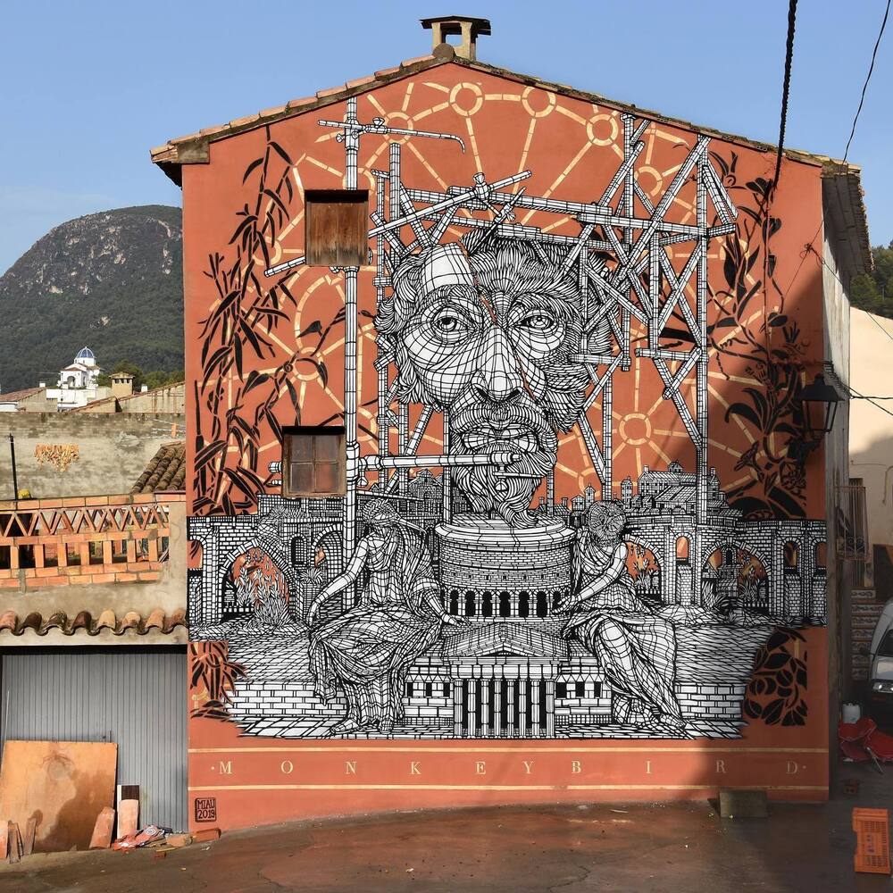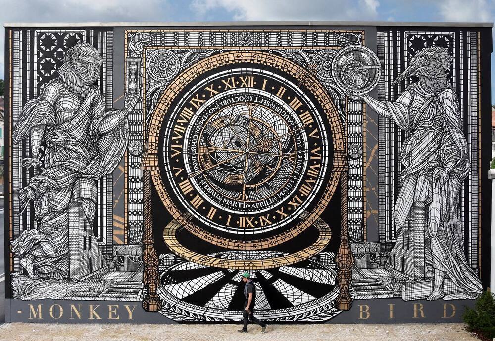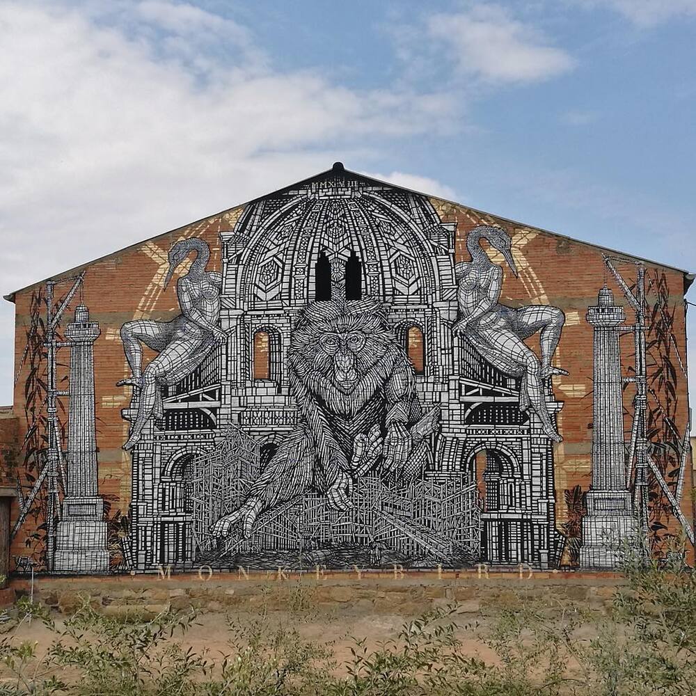 Mural sanatında sanatçı sayısı kadar farklı estetik yaklaşımla karşılaşıyoruz. Karakter tasarımcısı ve animatör kimliğini duvarlara yansıtan Juanjo Surace’ın muralları, Ella & Pitr’in boyut açısından sürekli dünya rekoru kıran devasa muralları ve Peeta’nın optik yanılsamalı muralları son dönemde radarımıza takılan çarpıcı işler arasındaydı. Şıradaki keşfimiz ise MonkeyBird takma ismiyle üretim yapan Fransız sanatçı ikilisinin mitoloji ve simya esintili muralları.