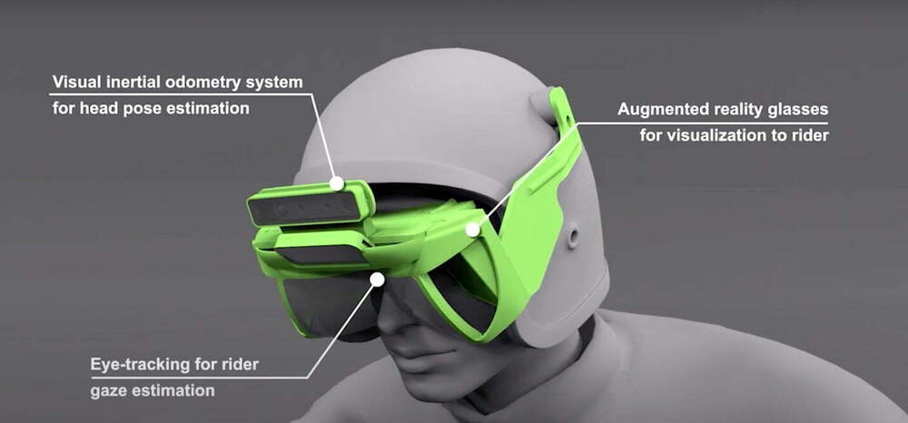 Kask sürücü viraja çok hızlı yaklaştığında ya da yol üzerinde riskli bir alana geçtiğinde sürücüyü görsellerle uyaran bir sisteme sahip. Sistem bu görevi motosikletin önüne monte edilen kameradan yola çıkarak hesaplıyor. Makine öğrenme ve nesne tanıma teknolojisi sayesinde yoldaki diğer araçlar, yol uyarı levhaları, yayalar, hayvanlar ve diğer tehlike unsuru olabilecek yapılar tespit edilerek kasktaki AR destekli ekrana yansıtılıyor.