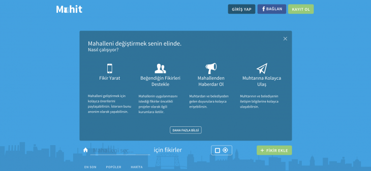 Muhit.co adresi üzerinden platforma kayıt olup hem mevcut istekleri destekleyebilir hem de kendi fikirlerinizi paylaşabilirsiniz. Yaşadığınız mahalledeki gelişmelerden kolayca haberdar olabilir ve muhtarla hızlıca iletişim kurabilirsiniz.