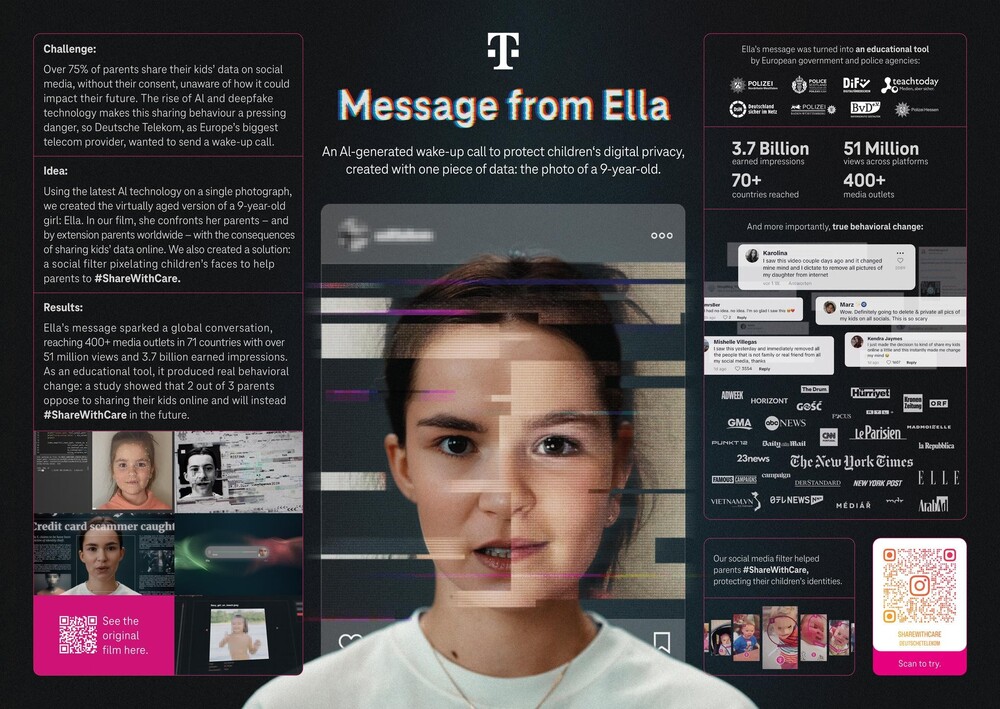 Bir örnekle arşive göz atalım. Digital Craft kategorisinde Gold alan A Message from Ella kampanyasının tüm yaratım sürecini, arşivden aldığım aşağıdaki görselde görebilirsiniz.