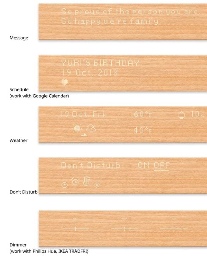 mui; akıllı ev kontrol merkezi görevi gören, sakin tasarımlı ahşap bir cihaz. Elinizle kaydırdığınızda beliren dijital panel kullanarak konuşabiliyor ve mesajlaşabiliyorsunuz. Haberleri ve hava durumunu kontrol edebiliyor, akıllı cihazları (aydınlatma, termostatlar vb.) ve daha fazlasını mui ile kontrol edebiliyorsunuz. İşiniz bittiğinde ekran kayboluyor ve panel yalnızca bir parça ağaç görünümü alıyor.