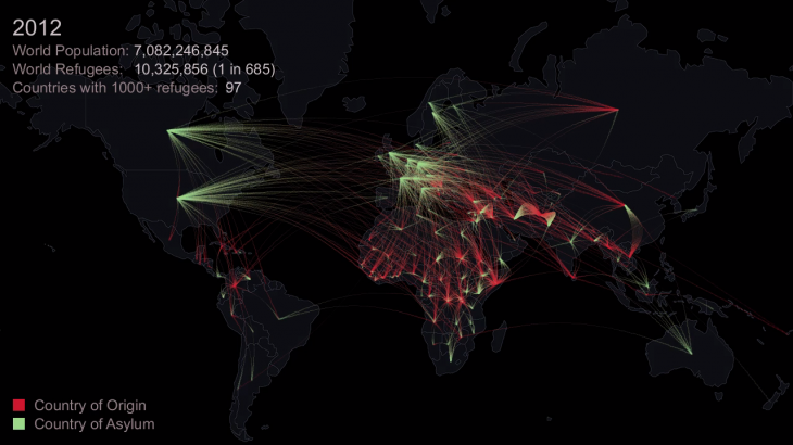 Veriyi kullanarak farklı gerçeklikleri müziğe dönüştüren Brian Foo, Data-Driven DJ projesinin 6. parçasında mültecilerin dünya üzerindeki 40 yıllık hareketini ele aldı. Birleşmiş Milletler’in verisine dayanarak geliştirdiği parçada 1975 ve 2012 arasında dünyanın herhangi bir noktasından herhangi bir noktasına sığınmacı olarak giden insanların ritmi melodiye dönüşüyor.