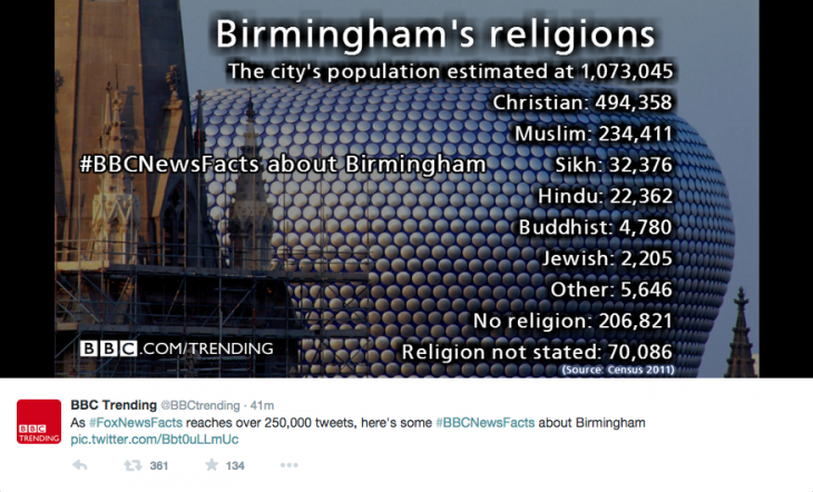 Charlie Hebdo saldırısı üzerine gündemde yer bulan bu sözlerin doğruluk payı ise neredeyse yok. Ülkenin müslüman nüfusu en yüksek 9. kenti olan Birmingham nüfusunun %22’si Müslümanken %47’si Hristiyan. Bu bilgi dahi şehre gayrimüslimlerin girmesinin yasaklandığını ve Müslümanların kontrolünde olduğu bilgisini yanlışlamaya yetiyor.