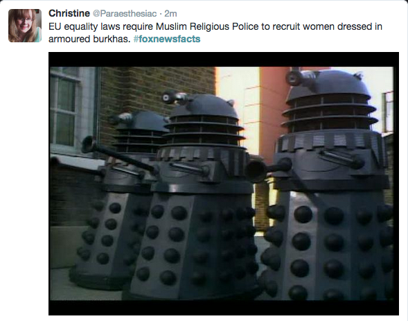 Bu sözler üzerine Twitter’da #foxnewsfact etiketiyle içerik üreten kullanıcılar bu etiketi dünyanın en çok konuşulanlar listesine (Worldwide Trending Topic) listesine taşıdı. Alt kısımdaki videoda konuşmanın tamamını izleyebilirsiniz. Hemen altında ise üretilen içerikler arasından bir seçki yer alıyor.