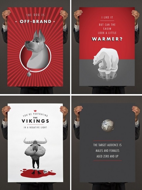 İrlandalı grafik tasarımcıları Mark Shanley ve Paddy Treacy (Mark + Paddy) tarafından başlatılan Sharp Suits, reklam sektörünün kemikleşmiş birleşenlerinden biri olan müşteri geri bildirimlerini konu almış bir proje. İkilinin başlarda bir kişisel proje olarak gördüğü Sharp Suits, müşteriler tarafından verilmiş absürd geri bildirimleri ele alan alttaki dört posterle başlamış.