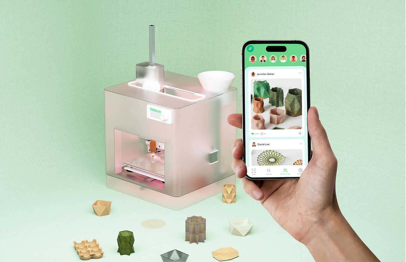 MIT mezunu ikili Biru Cao ve Yiqing Wang tarafından geliştirilen yapay zekâ destekli 3B yazıcı FOODres.AI, evsel gıda atıklarını işlevsel nesnelere dönüştüren masaüstü cihaz. Nesne tanıma, malzeme işleme ve katmanlı üretim teknolojilerinin entegre edilmesiyle yaratılan sistem, küçük ölçekli döngüsel tasarım yaklaşımıyla evsel atık yönetimine alternatif bir çözüm sunuyor.