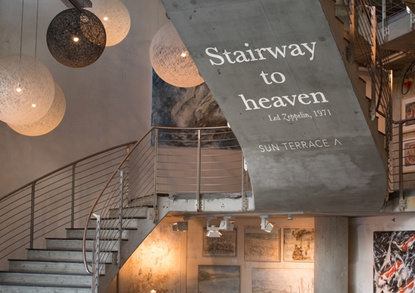 Nhow Berlin oteli, sanat yönetmeni Olivier Nowak sayesinde şarkıların adları ile kaplandı. Bu otelde resepsiyon masasındaki zilden merdivenlere hatta görevlilerin yaka kartına kadar pek çok nesnenin üzerinde sevilen şarkıların isimleri yer alıyor. Örneğin merdivenlerde Stairway to Heaven’la ya da girişteki halının üzerinde Welcome to the jungle ile karşılaşmak mümkün. Zekice kurgulanmış tasarımda şarkıların tarihleri ve sanatçı bilgileri de bulunuyor. İnsanın içinde orada yaşama isteği uyandıran otelin görsellerine buradan ulaşabilirsiniz.