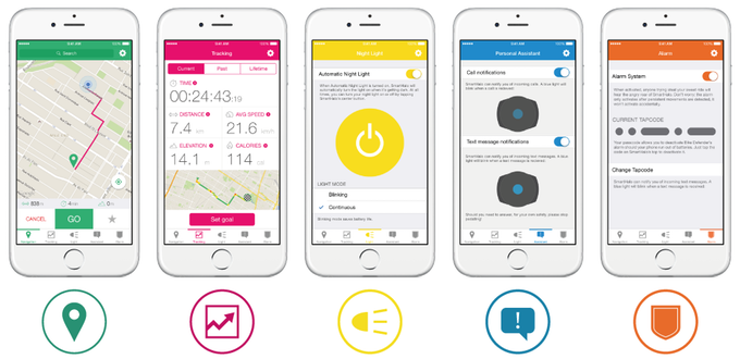 Bir daire ve ışıklı etkileşim diliyle tasarlanan SmartHalo, akıllı telefon üzerinden tüm kontrolü sağlıyor. SmartHalo‘nun 5 temel özellikle donanmış. GPS ve navigasyon özelliğiyle gitmek istediğiniz noktaya sizi yönlendiriyor ve bisikleti son bıraktığınız yeri hatırlıyor. Ortalama hız, mesafe, yakılan kalori gibi sürüşün metrik değerlerini raporlayarak adeta bir giyilebilir sağlık ürünü gibi vücudunuzun verisini topluyor. Güneş battığı zaman fara dönüşerek yolunuzu aydınlatıyor. Bireysel asistanlık görevini üstlenerek telefonunuza gelen çağrı ve mesajları iletiyor. Ve eve dönüp bisikletten ayrıldığınızda, aracın koruyucu meleği oluyor. Güvenlik önlemiyle bisiklete yapılan herhangi bir müdahalede alarmı çalışıyor ve size haber veriyor.