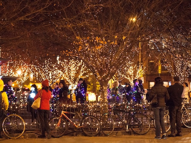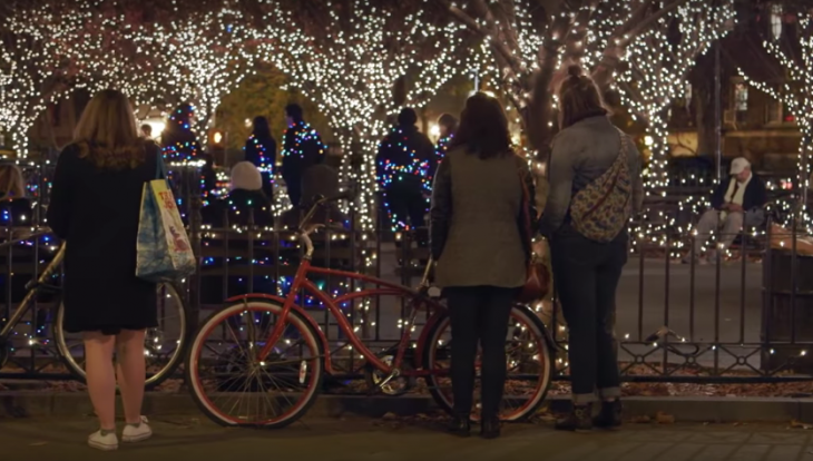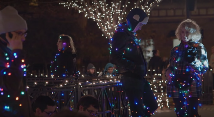 İnteraktif ışık şovunda insanlar, ışığı yakacak olan kolu indirdiklerinde muazzam bir manzarayla karşılaştılar: Park, içindeki tüm ağaçlar, çeşmeler, direkler ve hatta bu performans için orada olan park sakinleriyle birlikte rengarenk bir ışık cümbüşü haline geldi. Vücutlarına sarılı rengarenk noel ışıklarının yanmasıyla bulundukları pozisyonda donup kalan, organizasyonun bir parçası olan park sakinleriyle mekan Noel kartpostallarına dönüştü.