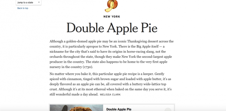 Ayrıca her tarifin altına “Join the Conversation” yazan bir Facebook ikonu koyan NY Times, kullanıcıları buradan ilgili eyaletin gönderisine yönlendirerek kendilerince o eyaleti en iyi temsil ettiğine inandığı yiyeceği yorum olarak paylaşmalarını sağlıyor.