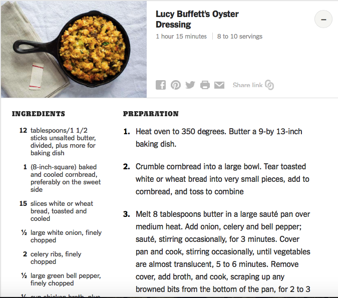 The New York Times, yaklaşan Şükran günü sebebiyle U.S.’deki 50 eyelet için orayı temsil eden şükran günü yemeklerini toparlamış. Bu kampanyasını Facebook üzerinden kullanıcılarla bir etkileşim aracı haline getiren yayın kuruluşu her eyelet için verdiği yemeğin tarifini de altında paylaşmış.