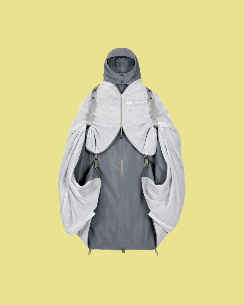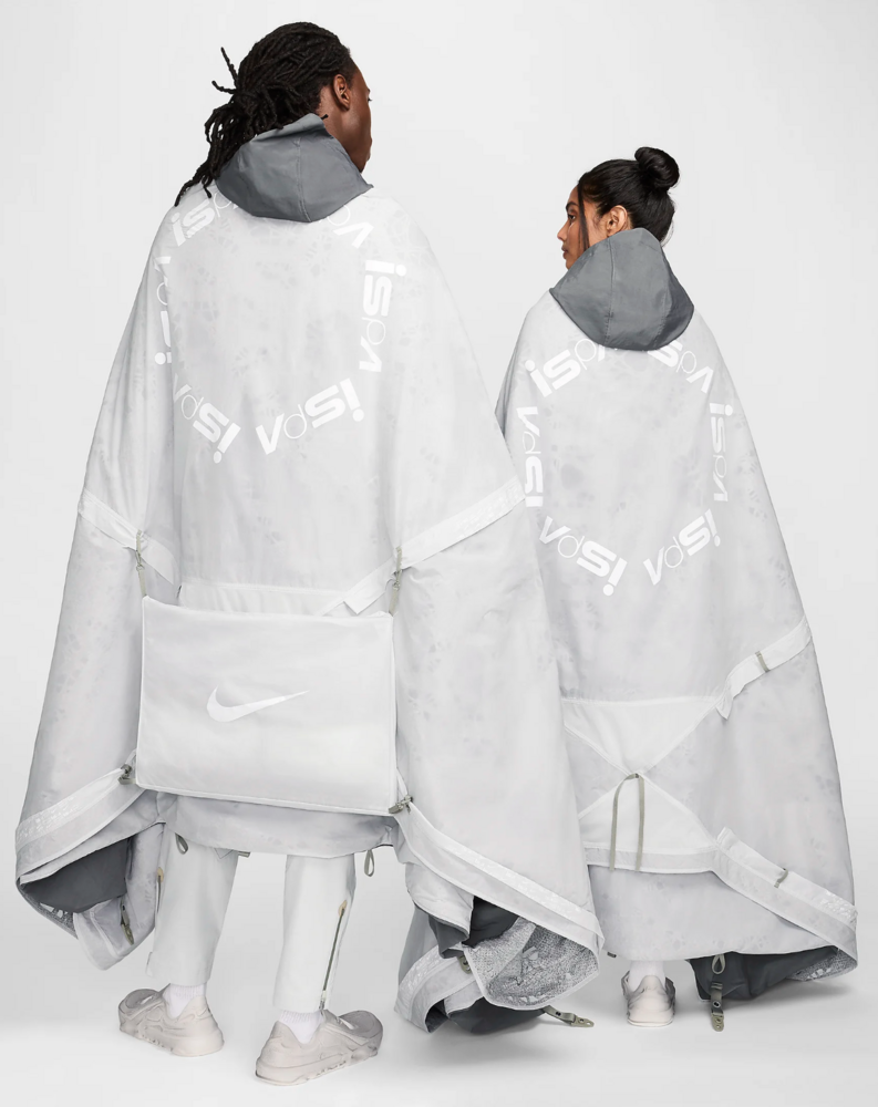 Sürdürülebilir malzemelerle üretilen Metamorph Poncho, Nike ISPA koleksiyonun bir parçası. Pamuk ve “en az” %75 oranında geri dönüştürülmüş plastik elyaf karışımından yapılmış. Ayrıca kullanılmayan balık ağlarından ve eski halılardan yapılmış geri dönüştürülmüş naylon da kullanılan malzemeler arasında. Nike neden bu malzemeleri kullandığını şöyle açıklıyor: “Geri dönüştürülmüş naylondan yapılmış malzemelerin kullanıldığı giysiler, işlenmemiş naylona kıyasla karbon emisyonlarını yüzde 50’ye kadar azaltıyor.”.