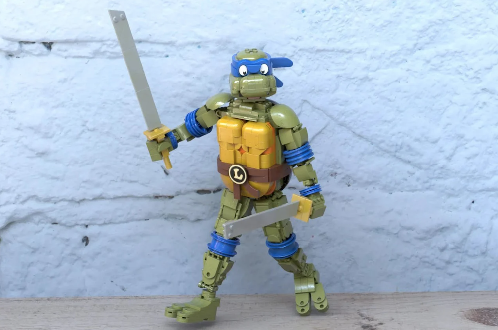 İnsansı özelliklere sahip olacak şekilde mutasyona uğramış dört kanunsuz kaplumbağa, dövüş sanatlarının eklektik bir karışımını ve özel dövüş silahlarını kullanarak New York sokaklarında suçla savaşıyordu. LEGO tutkunu Teljesnegyzet, çocukluğumuzda içimize işleyen bu yaratıklara olan ilgisini, kendi tasarladığı LEGO tabanlı aksiyon figürü setiyle göstermek istemiş. Böylece süper kahraman kıyafetleri içindeki dört kaplumbağanın oldukça gerçekçi bir temsili olan LEGO Ideas TMNT seti doğmuş. Sette, dört farklı renkte bandanaları ile kaplumbağalar ve özel savunma silahları yer alıyor. Her kaplumbağanın kemer tokasında isminin baş harfi yazılı. Kaplumbağaların her biri de yeşilin farklı bir tonunda.