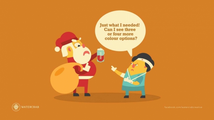 Hindistan’daki Watercrab reklam ajansı ise Noel Baba bir ajans olsaydı vereceği hediyelere gelecek muhtemel “revizyonlarla” ilgili 6 illüstrasyonluk hem eğlenceli hem de imalı bir seri hazırlamış.