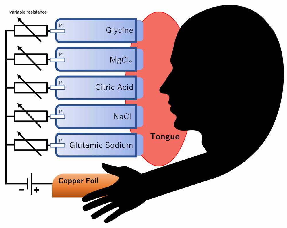 Japon araştırmacı Homei Miyashita, kullanıcının herhangi bir şey yemesine gerek olmadan sadece yalayarak farklı tatları deneyimleyebileceği bir cihaz geliştirdi. Norimaki Synthesizer adlı bu cihaz, tatları taklit etmek için çözünmüş elektrolitlerden yapılmış beş jel nodülü içeriyor.