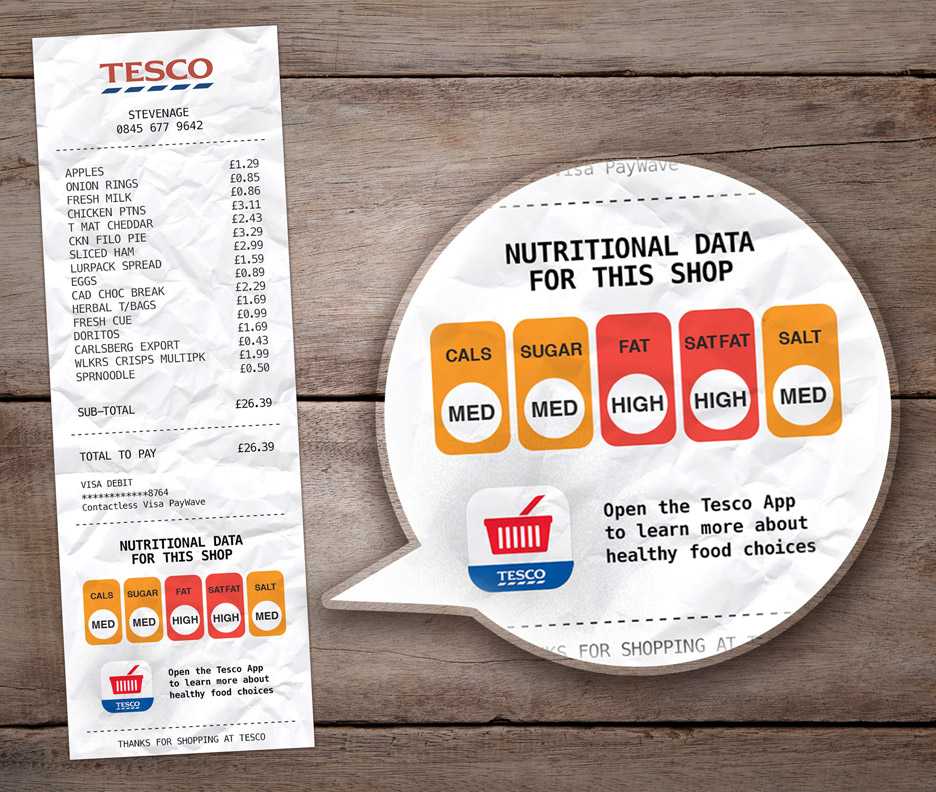 İngiliz tasarımcı Hayden Peek’in tasarladığı süpermarket fişlerinin üzerinde, yapılan alışverişin içerdiği besin değerleri ve risk unsurlarına göre alışverişinizin sağlıklı olup olmadığını gösteren renklendirmeler ve uyarılar yer alıyor.