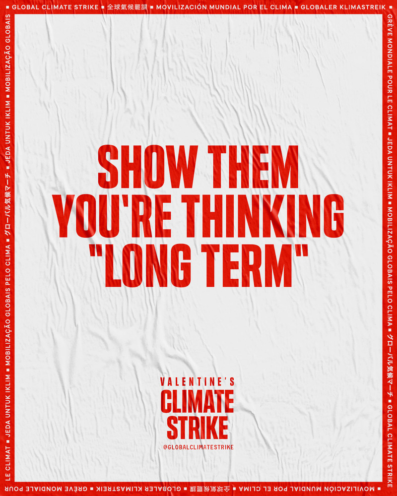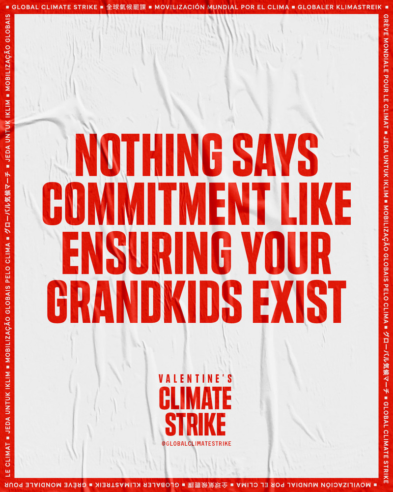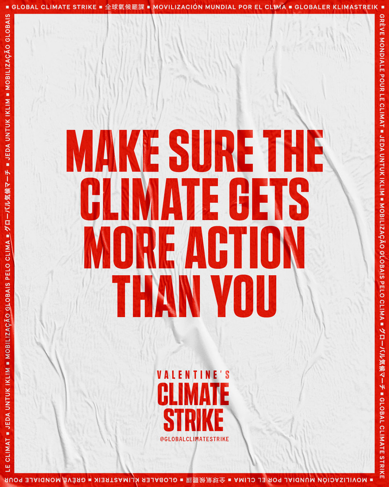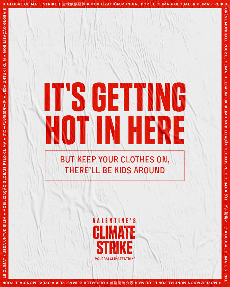 Sevgililer Günü’ne saatler kaldı. Diğer taraftan insanlığın kaderini belirleyecek bir başka geri sayım daha hızla ilerliyor. Bu geri sayımın adı da iklim krizi. Öyle ki insanlığın ve aşkın bu gezegende daha ne kadar süre var olabileceğini, daha kaç kez Sevgililer Günü kutlanabileceğini belirleyecek olan da bu. Konuya duyarlı aktivistlerden ve girişimciler tarafından hayata geçirilen birkaç güzel projeyi daha önce derlemiştik. Bunlar içinde en dikkat çekici olanlardan biri Greta Thunberg’in büyüyen ve küresel eyleme dönüşen Fridays for Future (Gelecek için Cuma Günleri) grevi oldu. Bu hareket kapsamında 14 Şubat Sevgililer Günü de dünya genelinde küresel iklim grevi eylemlerine sahne olacak. İngiliz tasarımcı Oli Frost ise bu özel gün için tasarladığı posterlerle konunun önemine dikkat çekiyor.