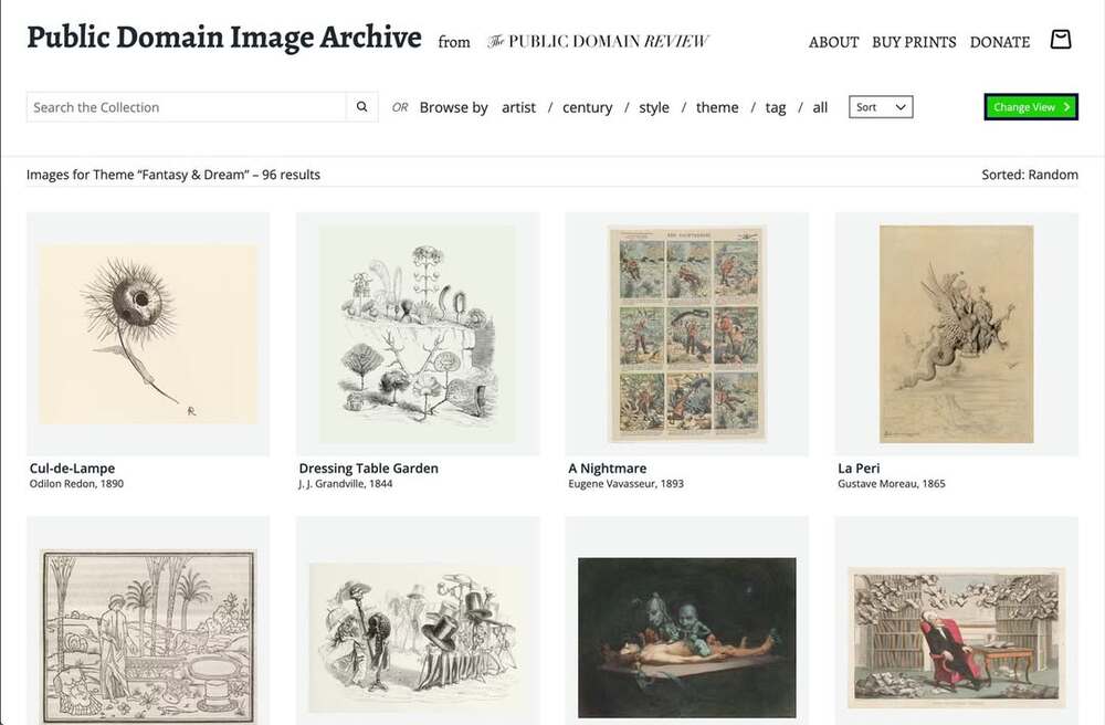 Dijital arşivleri kullanmanın en zor tarafı; binlerce tabloyu, illüstrasyonu ve fotoğrafı doğru şekülde filtreleyip isabetli sonuçlara ulaşmak. PDIA’in öne çıktığı nokta, kullanıcı deneyimine verdiği önem. Ziyaretçiler, arşivin katalog görünümünü tercih ederek; tasarım veya okült gibi temalara, sanatçılara veya stillere göre arama yapabiliyor. Dileyenler ise “infinite view”i (sonsuz görünüm) tercih ederek arşivde daha genel bir tur atabiliyor. Ayrıca şöyle bir shuffle view görünümü var. Bu görünümü tercih ettiğinizde geçmişinizin, bugününüzün ve geleceğinizin üç kartlı tarot açılımına benzeyen üç rastgele görüntü önünüze geliyor.
