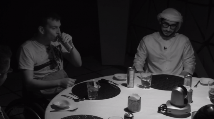 Sandalyelerinin altında açılmayı bekleyen kırmızı kutuların içindeyse üzeri etiketsiz Coca-Coca kutuları yer alıyor ve karanlıkta yenen yemeğin mesajını güçlü ve etkili bir şekilde veriyor: “Etiketler kutular içindir, insanlar için değil.”