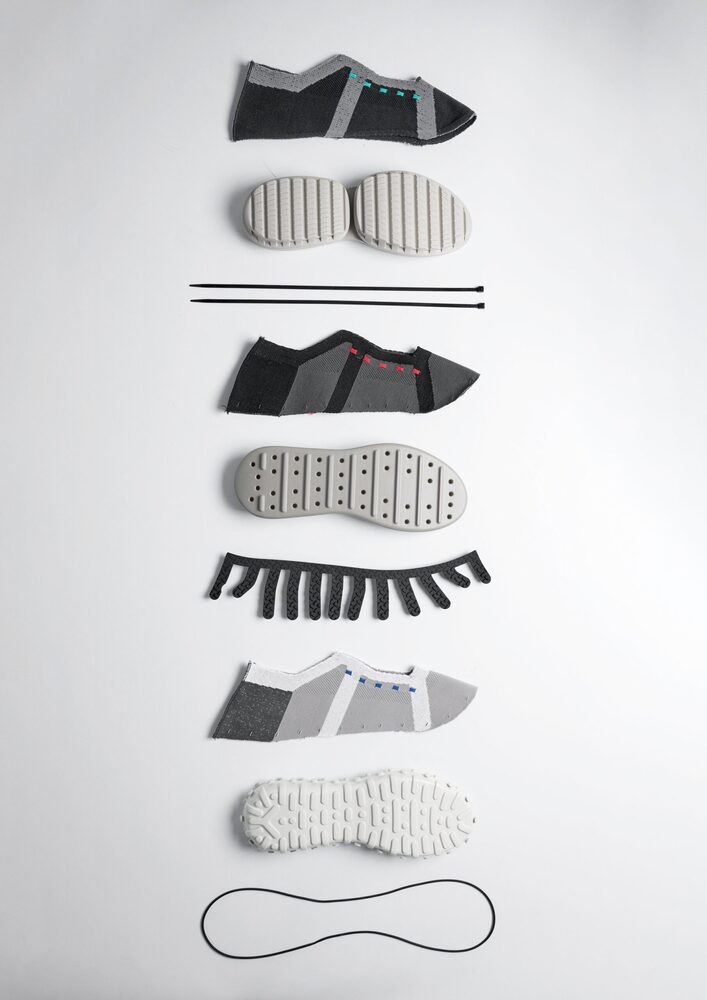 Proje kapsamında 3 farklı demonte tasarım mevcut. Ayakkabıları sürdürülebilir kılan şeylerin çoğu, estetik olarak da karakterinin bir özelliği haline gelmiş. Üstelik de bu estetik görünüm, sürdürülebilir hassasiyetleri olmayan kullanıcıyı dahi cezbedebilecek kadar şık. Bu haberde en çok lastikle birleştirilen tasarıma ağırlık verdik.
