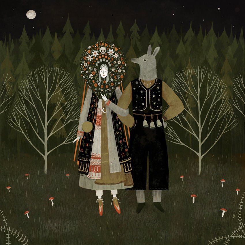 Alexandra Dvornikova; ormanı, hayvanları, bitkileri ve insanları karanlık ama şirin bir üslupla ele alan illüstrasyonlar üretiyor.