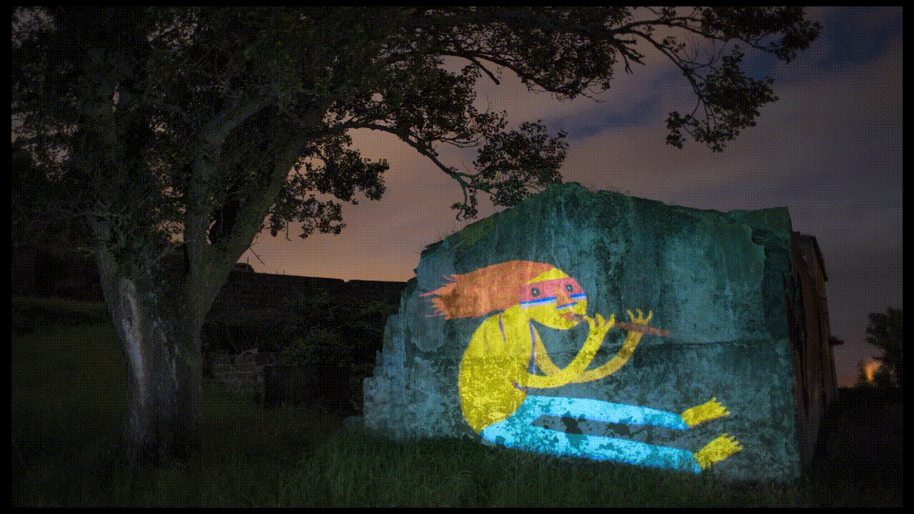 İkili, “Nature Projections” (Doğa Yansımaları) olarak adlandırdıkları çalışmayı São Miguel Adası’ndaki ormanlık alanlara, tepelere ve kıyılara taşıdı. Projeksiyonla yansıtılan deniz kızı, kaplan, kuş ve elle çizilen birçok farklı figür, güneş battıktan ve karanlık çöktükten sonra adanın çeşitli yerlerini masalsı bir atmosfere bürünmesine sebep oldu. Kısa animasyon video ve stop-motion karışımından oluşan çalışma teknoloji, sanat ve doğayı birleştirirken doğanın büyüleyici dokusuna bambaşka bir renk kattı.