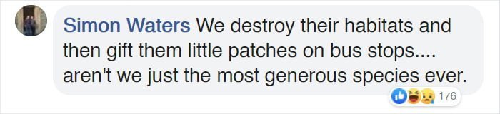 Öte yandan çarpıcı eleştiriler de gelmiş. Örneğin Simon Waters “Onların yaşam alanlarını mahvediyoruz ve sonra da onlara da otobüs duraklarının üzerinde minicik alanlar armağan ediyoruz. Gelmiş geçmiş en cömert türüz değil mi?” şeklindeki yorumuyla pek çoğumuzun aklından geçenlere tercüman olmuş.