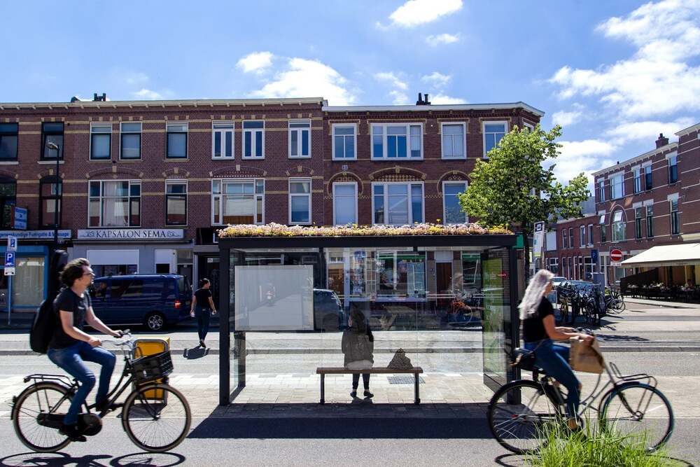 Hollanda’nın en büyük dördüncü şehri olan Utrecht’te; 316 otobüs durağına sukulentlerle kaplı yeşil çatılar, LED aydınlatmalar ve bambu sıralar eklenmiş. Duraklardaki yeşil çatılar, farklı türler için yeni bir yaşam alanı yaratarak kentin biyolojik çeşitliliğini destekliyor. Çatılar aynı zamanda yağmur suyunu saklıyor ve ince tozları tutarak hava kirliliğinin etkisini azaltıyor. Yeşil çatılar, çok az bakım gerektiren ancak çiçeklerini bal arılarını ve yaban arılarının çok sevdiği sedum (dam koruğu) türünde bitkilerden oluşuyor.