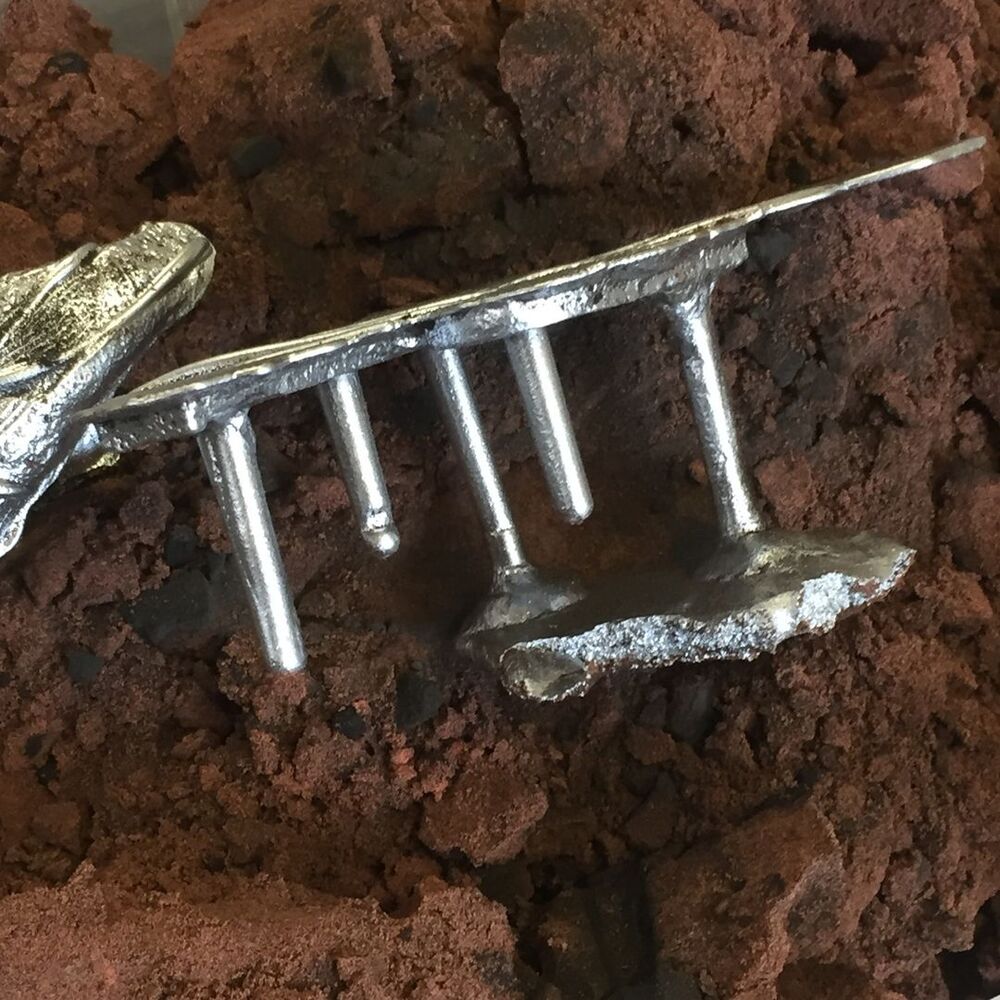 Bu hurdaları özgün tasarımlarla yamalara dönüştüren Pocheron, parçaların yüzey süslemelerini ve desenlerini de yine onları hurdalık sahalarından çıkarılan döküm kuma basarak yaratıyor.