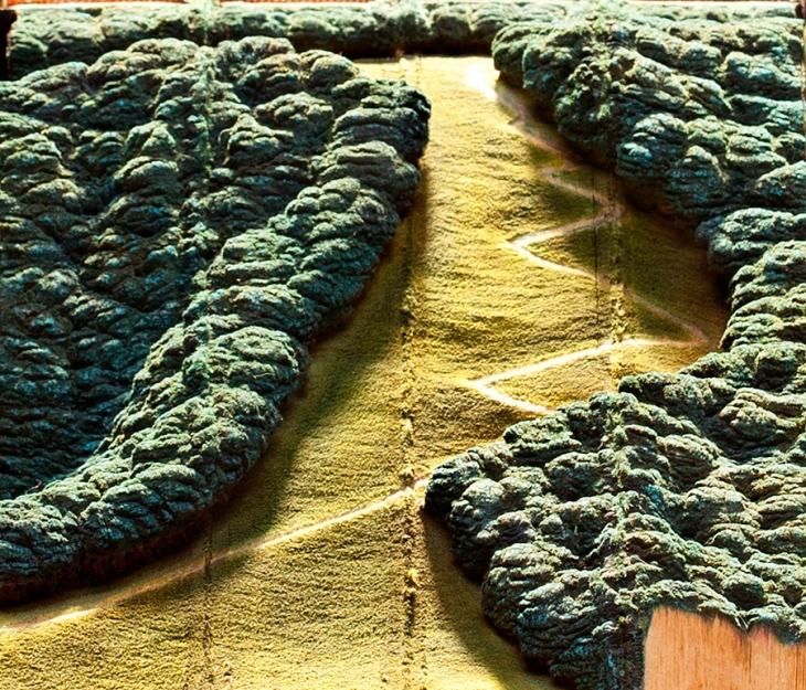 İkinci el kitap dükkanlarından aldığı kitapların kapaklarına kuş portrelerini koyuyor. Ve ardından başlıyor işçiliğe, adım adım, tane tane kitapların sayfalarını 3 boyutlu haritaya dönüştürüyor. Kapaktaki kuşun yaşam alanı, kitapta belirmeye başlıyor.