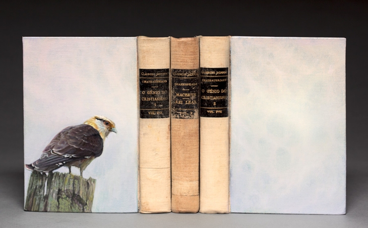 9 kitap ve kuştan oluşan projesi şu anda New York’taki JHB Gallery’de sergileniyor.