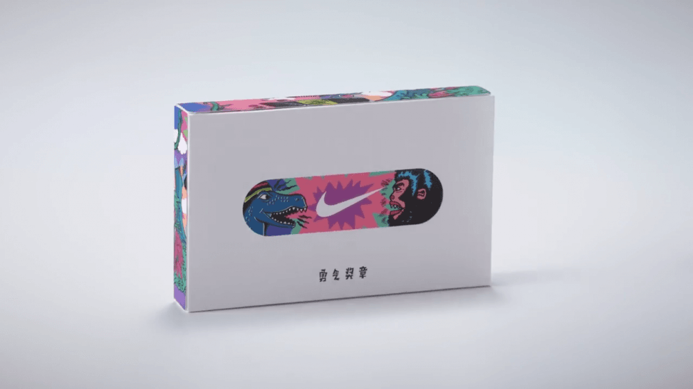 Çin’de 1 Haziran’da kutlanan Çocuk Günü için tasarlanan bantlar, Nike “Young Athletes” ürünleri alanlara ücretsiz olarak dağıtılmış. Farklı şekillerden oluşan 14 bantlık 4 set olarak geliyor. Her set kaykay, koşu, basketbol veya futbol çevresinde dönen bir hikayeyi anlatıyor.