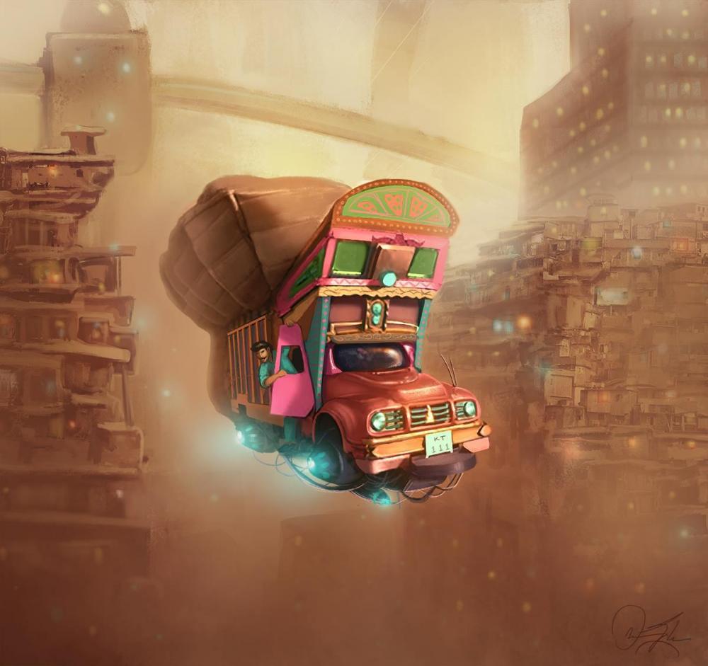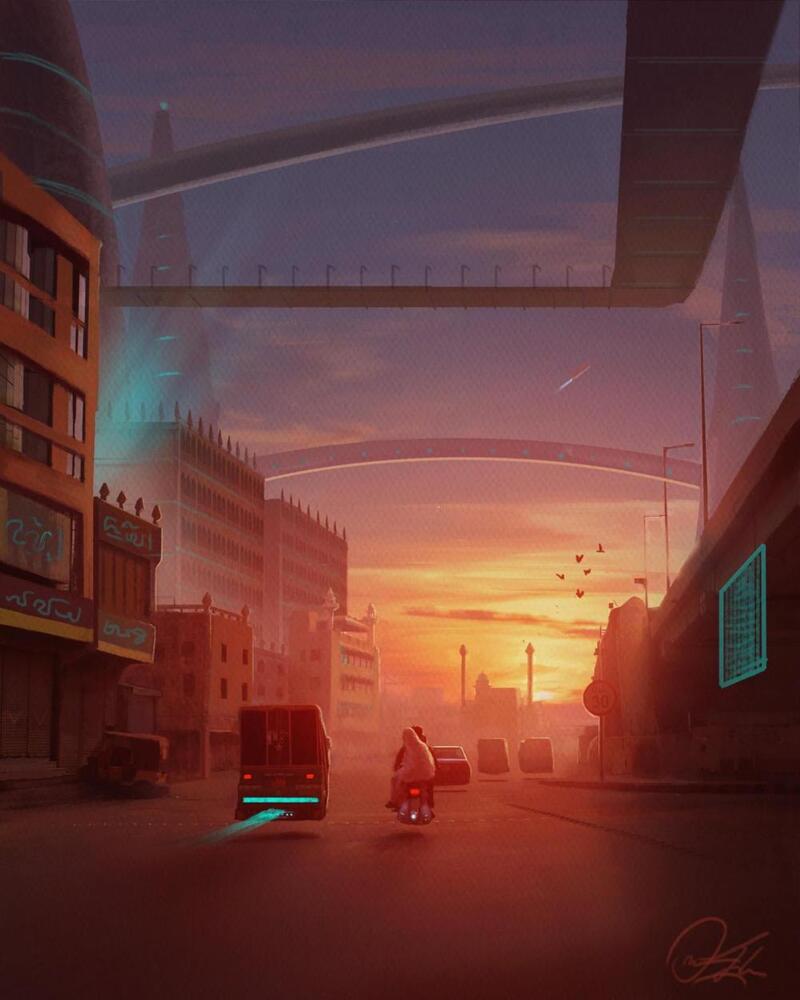 Geleceği düşünmek ve bilim kurgu senaryoları yaratmak eğlenceli iş… Hele bunları bir de yetenekli bir çizer yapıyorsa. Ve bu çizer bilim kurgu janrında alıştığımız “Batı” şehirleri yerine, kendi ülkesi olan Pakistan’ı fütüristik bir şekilde düşlüyorsa… Pakistanlı çizer ve konsept sanatçısı Omar Gilani tam da bunu yapıyor. Pakistan’ın günlük hayatından sıradan kareleri alıyor, bir bilim kurgu ortamının içerisine yerleştiriyor. Ortaya çıkan sonuç tahmin edeceğiniz üzere, nefis.