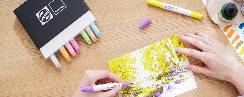 Küresel renk otoritesi PANTONE, Hollandalı sanat malzemeleri markası Royal Talens ile keyifli bir işbirliğine imza attı. Böylece sanat dünyası PANTONE kodlarıyla tam olarak eşleşen 108 farklı renkte marker’a sahip oldu. Bu yeni Talens | Pantone sanat malzemeleri serisinin, tek üyeleri kalemler değil. Seride marker mürekkepleri ve defterler de yer alıyor.