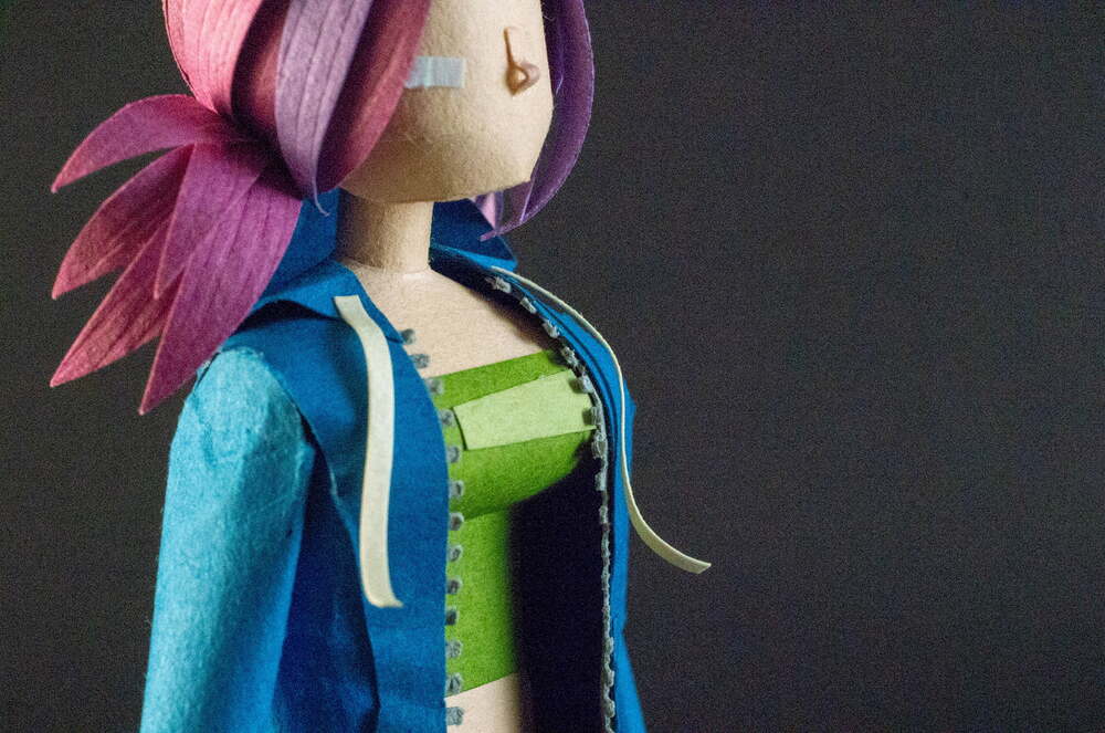 İkili, kağıdın karakteristik yapısını koruyarak figürlerini inşa ediyor. Bence onları farklı yapan şeylerden biri bu. Özellikle saçlarda kağıdın 2 boyutlu yapısının korunduğunu ve herhangi bir gerçekçi yanılsama yaratmaya çalışmadıklarını görebilirsiniz. Kağıdın katlama yerlerini, yırtıklarını ve ekleme noktalarını gizlemeye çalışmamışlar, tam tersi bunları avantaja dönüştürmüşler.