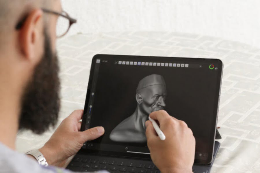 iPad Pro ve Apple Pencil kullanarak Forger uygulaması üzerinden karakterin dijital heykelini oluşturan ekip modeli tamamlamasının ardından Blender uygulaması ile kağıttan üretilebilecek forma getiriyor. Kağıtla üretilmiş görünümünü kazanan heykelin dosyaları internet ortamına yükleniyor ve böylelikle sergi sanal boyuta taşınıyor. Papier Atelier, sanal sergisinde karakterin farklı projeksiyonlarıyla hem ifadedeki değişimleri hem de perspektif üzerindeki etkilerini göstermeyi amaçlıyor.