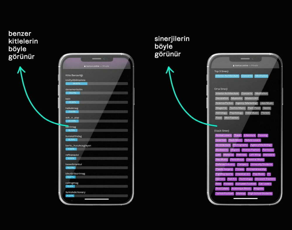Peki süreç nasıl işliyor? komün*’ün oldukça sade bir arayüzü var. Kullanıcılar üye olduktan sonra bilgilerini giriyor ve sisteme dahil oluyor. Üyelerden sadece Instagram kullanıcı adı isteniyor. Instagram’ın resmi ya da gayriresmi API’larından hiçbiri kullanılmıyor. komün*, üyelerin takipçi kitlelerini yapay zeka ve veri bilimi teknolojileri sayesinde detaylı olarak analiz ediyor. Markanın ulaşmak istediği kitle ve yapmak istediği iletişimin KPI’ları belirleniyor ve platform üzerinde bir iş birliği yaratılıyor. Benzer bir kitleye hitap eden üye, dilerse, bu iş birliğine başvurabiliyor. Bu sürecin ardından marka çalışmak istediği üyelere ürün gönderiyor veya hizmet sunuyor. Markanın hedeflerine ulaşana kadar iletişime devam ediliyor. Bu sayede ideal marka iletişimi kurgulanmış oluyor.