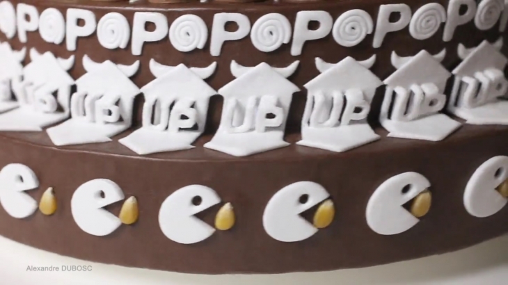 Fransız animasyon sanatçısı ve yönetmen Alexandre Dubosc, son bireysel çalışmasında kule gibi yukarı tırmanan ve kat kat şekillenen bir pasta formunda zoetrop geliştirmiş. Üst katında kahve bardağının hareketiyle dönen ve atmosferi ısıtan pasta, aşağılara doğru indikçe daha da ilginç olaylara sevk ediyor.