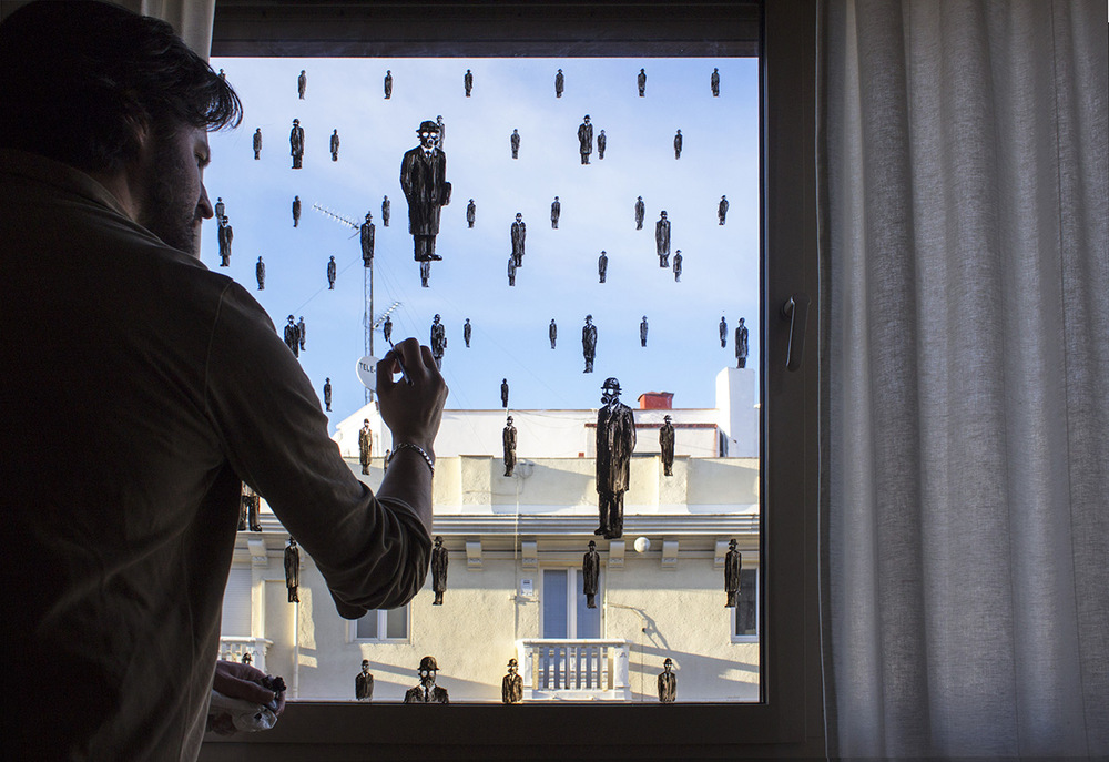 Sosyal izolasyon sürecini Madrid’deki evinde geçiren Pejac, camlara çizdiği minyatür figürleri arka plandaki manzaralarla ilişkilendirerek yeni işler yapmaya başladı. Sanatçı bu teknikle üretim yapmanın öte geçti ve küresel çapta yaratıcı bir hareket başlatmış oldu. Böylece insanlar kapalı kaldıkları iç mekanlardan kentsel alanlarla etkileşime girmenin yaratıcı yollarını buldular.