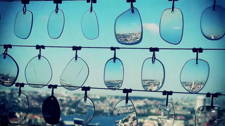 Kanadalı sanatçılar Caitlind R.C. Brown ve Wayne Garrett tarafından hazırlanan kinetik yerleştirme, Pera Müzesi’nin dışına devasa bir çembere dizilen 14.000 gözlük camından oluşuyor. Kullanılmış gözlük camlarını toplayarak üretilen eser, Pera Müzesi’nin manzarasını farklı gözlerle görmemizi sağlıyor. Aynı zamanda dev çember yüzeyinin yarattığı dalgalanma da yeni bir düzlem yaratıyor.
